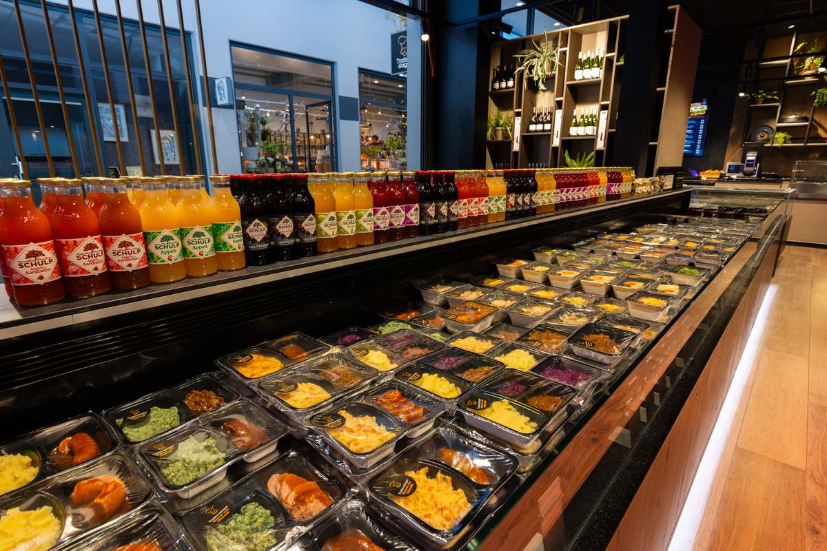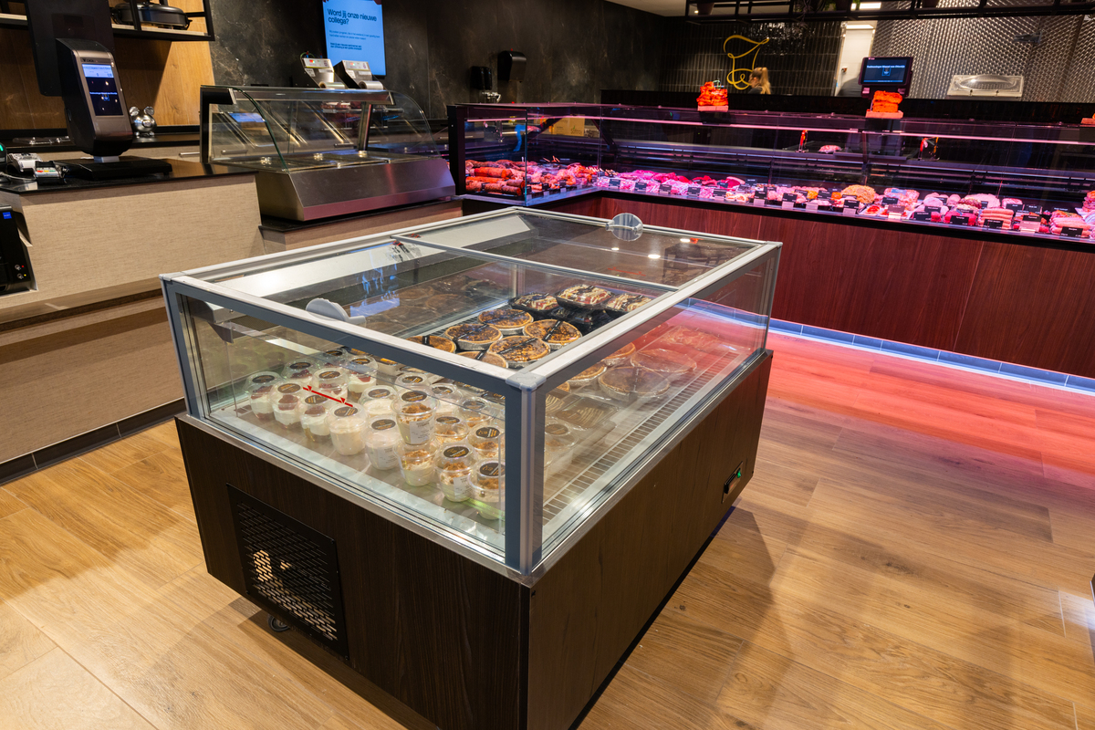Het centraal geplaatste koeleilandmeubel geeft een duidelijke routing aan in de winkel en is ideaal voor de presentatie van zelfbedieningsproducten. Hierdoor worden klanten op een natuurlijke manier door de winkel geleid en krijgen de producten maximale aandacht.