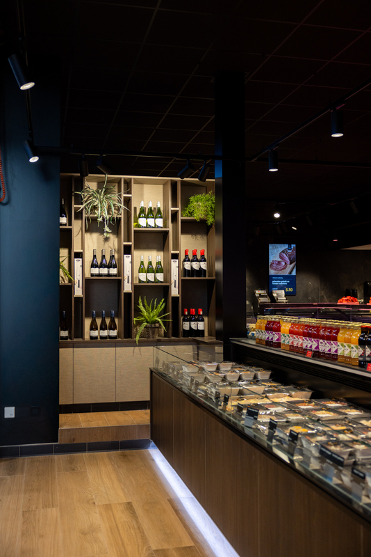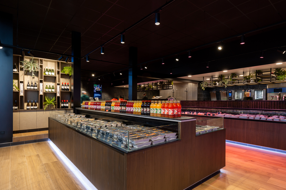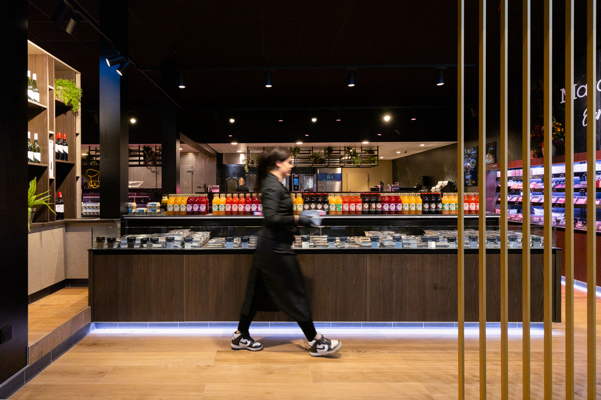 Een echte blikvanger is de op maat gemaakte wijnkast, die perfect aansluit bij het totaalconcept van de winkel en zorgt voor een hoogwaardige uitstraling. Een project waarin functionaliteit, uitstraling en beleving naadloos samenkomen.